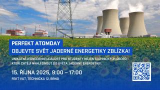 Fakulta elektrotechniky a komunikačních technologií VUT zve studenty i širokou veřejnost na PerFEKT AtomDay, který proběhne 15. října 2025 od 9:00 do 17:00 v prostorách budovy na Technické 12 v Brně. Unikátní jednodenní akce nabízí možnost nahlédnout do fascinujícího světa jaderné energetiky – od nejnovějších technologií až po každodenní provoz jaderných elektráren.